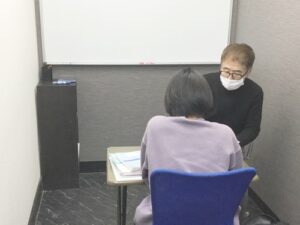 生徒一人に対してもホワイトボードを使い、わかりやすく丁寧な対面指導をします。